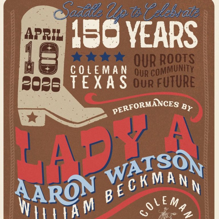 Coleman is celebrating 150 years with activities all day from 11am-10pm. The concert will be FREE. For more information http://www.ColemanTX1876.com
